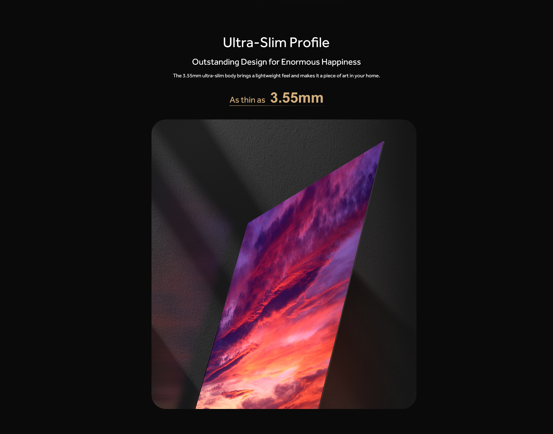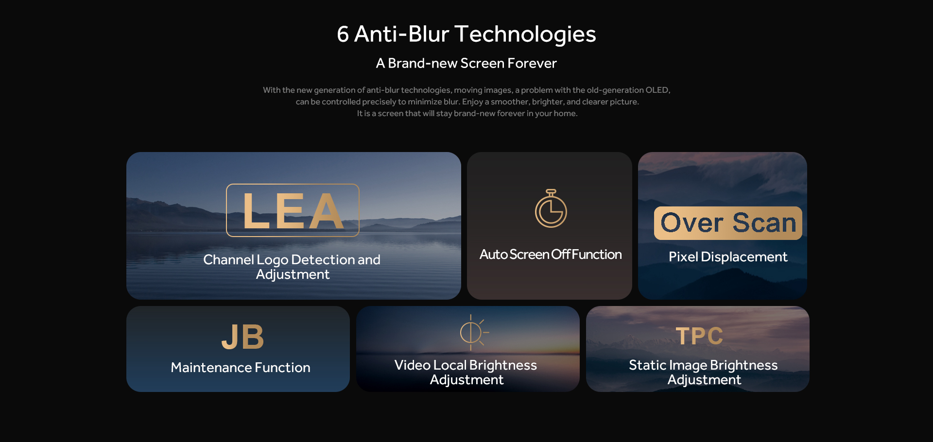 The 8.3 million Self-lighting pixels can turn on and off individually to achieve an infinite contrast ratio with perfect blacks to provide you truly spectacular picture quality. The hidden leaf textures, the contours in a dark night, and other vivid details are all visible.